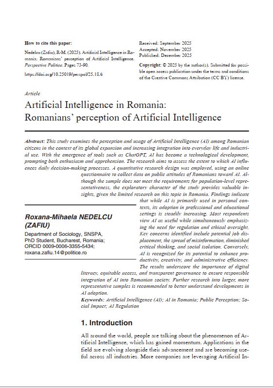 Artificial Intelligence in Romania: Romanians’ perception of Artificial Intelligence